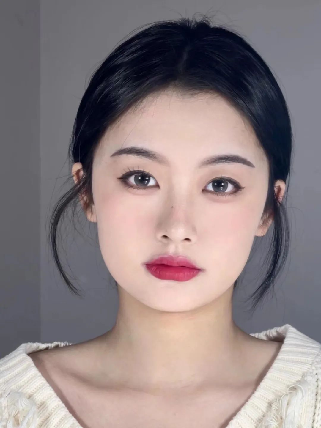 想让脸显得更小的话,无非就是让五官外面一圈的留白更少。就像开头说的,外边显得小,就要把里面的内容放大