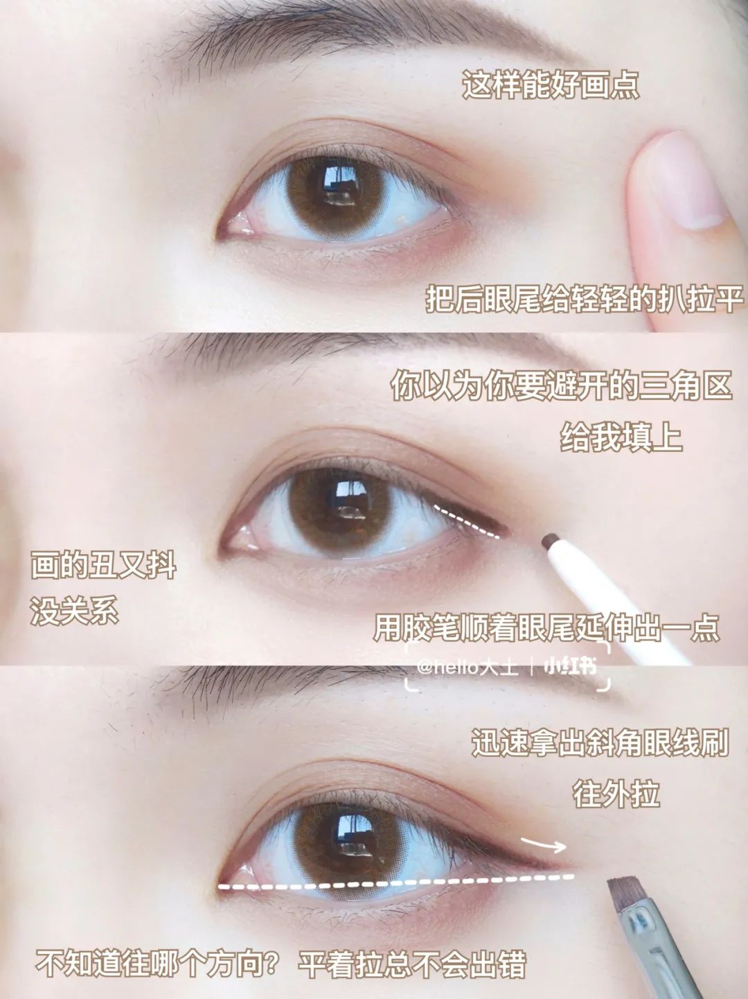不过拉长的范围要注意,尽量不超过你的眼尾沟,不然看起来就很生硬。