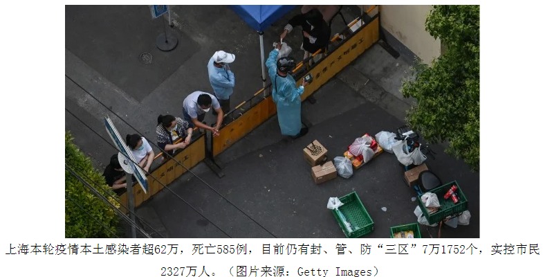 【看中国2022年5月23日讯】(看中国记者李木子综合报导)上海本轮COVID-19疫情自3月1日以来本土感染者超62万人,死亡585例,目前仍有封、管、防“三区”7万1752个,实控市民2327万人。网传,上海有方舱医院关停,安徽一家给方舱医院人员做饭的餐饮公司人员却无人管,被迫露宿街头。