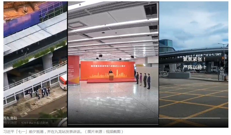 习近平抵港讲话视频曝光 高铁站内外戒备森严(视频)