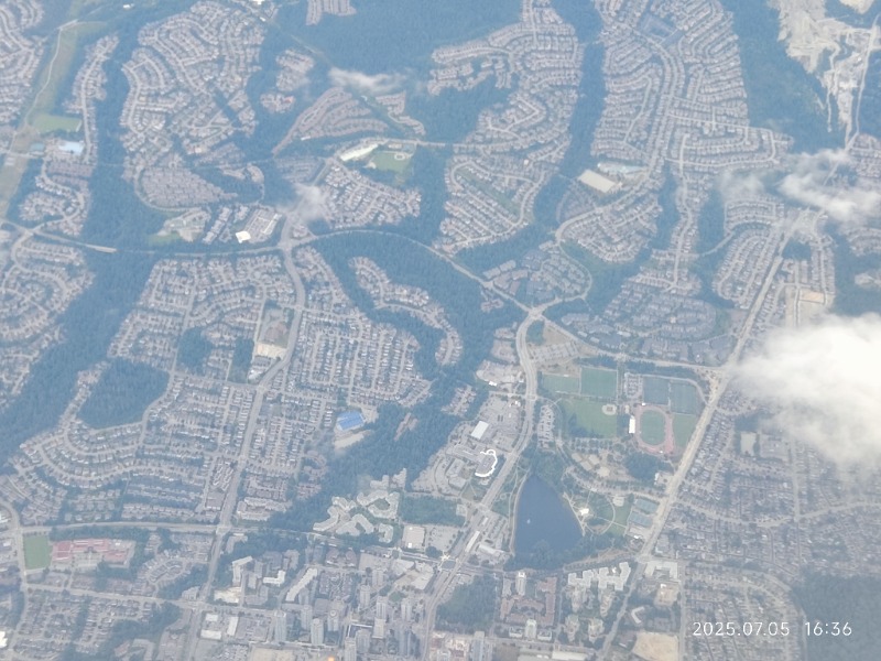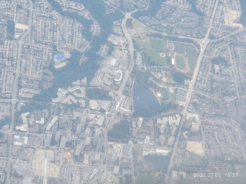 本拿比的capitol hill 区,左边的绿地和红色跑道是confederation park, 右边的绿地是burnaby north 中学。