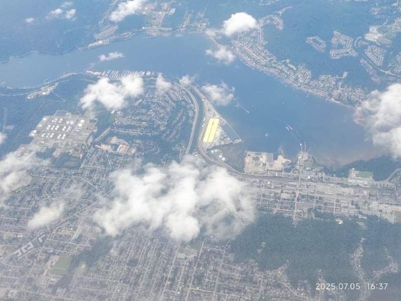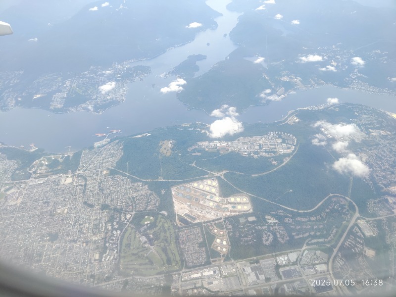 SFU山脚下的炼油厂,绿地是本拿北山高尔夫球场。
