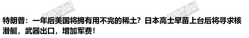 特朗普:一年后美国将拥有用不完的稀土?日本高士早苗上台后将寻求核潜艇,武器出口,增加军费!
