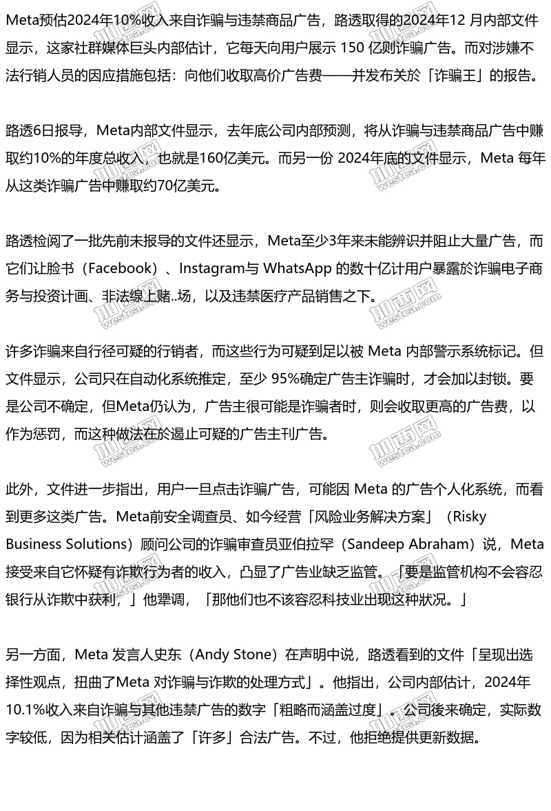 路透爆: Meta每年海赚160亿美元「来自诈骗、违禁品广告」