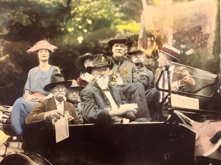 挡风玻璃上的标语:“退伍军人免费乘车”。
