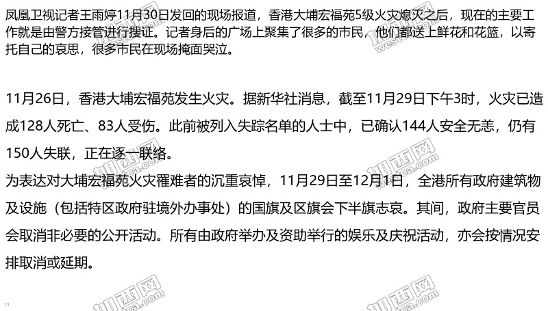 11月26日,香港大埔宏福苑发生重大火灾。据新华社消息,截至29日下午3时,火灾共造成128人遇难、83人受伤。此前被列入失踪名单的人士中,已确认144人安全无恙,仍有150人失联,正在逐一联络。