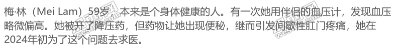 抗生素无效。林女士写道:“肛门的疼痛比手术前更加严重。”
