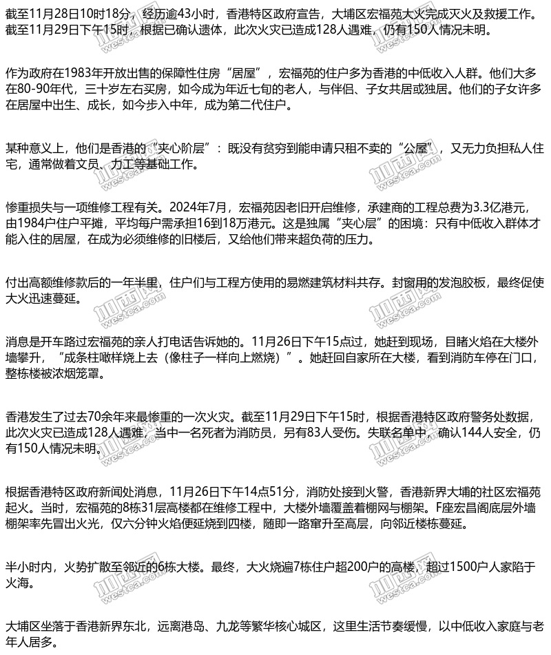 香港火灾严打网络"虚假信息" 工程招标受关注