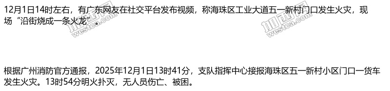 广东海珠区发生火灾,“沿街烧成一条火龙”