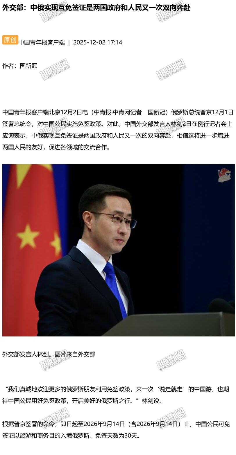 Íâ½»²¿£ºÖжíʵÏÖ»¥Ãâǩ֤ÊÇÁ½¹úÕþ¸®ºÍÈËÃñÓÖÒ»´ÎË«Ïò±¼¸°