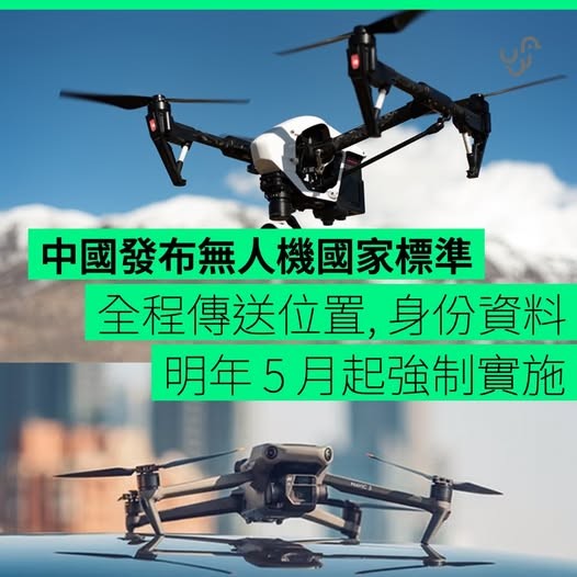 中国发布无人机国标明确“谁能飞”和“谁在飞” 5 月 1 日起实施。