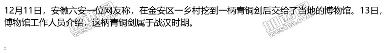 这位网友在视频和评论区里介绍,这柄剑是在六安市金安区发现的,发现了之后就上交给了皖西博物馆。