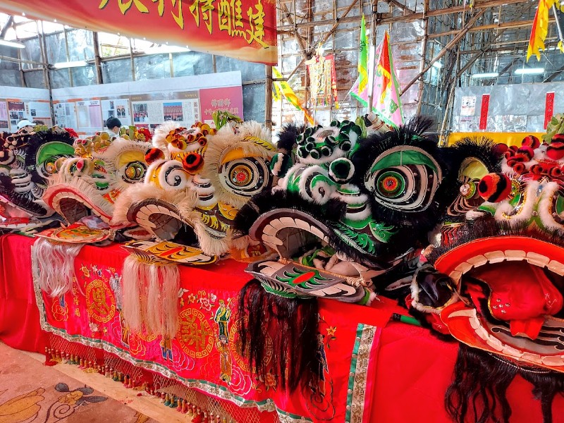 舞狮头在这些活动中不仅是表演道具,常与开光仪式、祈福和社群聚会(如盆菜宴)相关联。