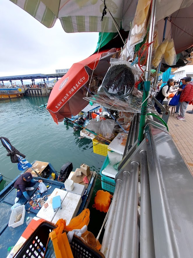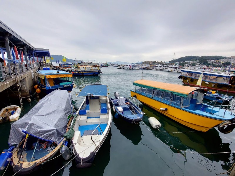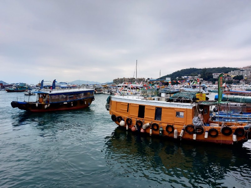前方醒目的橘色船隻是香港常见的街渡(Kaito)或舢舨,主要用作接载遊客往返西贡附近的离岛。