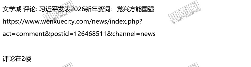 文学城网民热火朝天学习习近平发表2026新年贺词