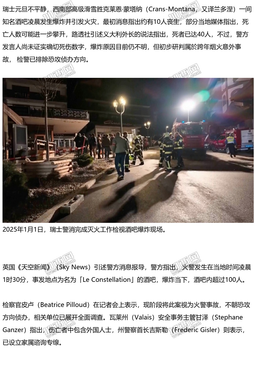 瑞士酒吧新年惨剧致百余死伤 原因居然是...