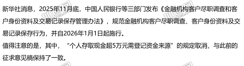 个人存取款超5万元不再登记 不再扰民