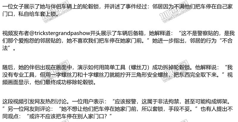 不满把车停在自己家门口 邻居私自给车套轮毂锁