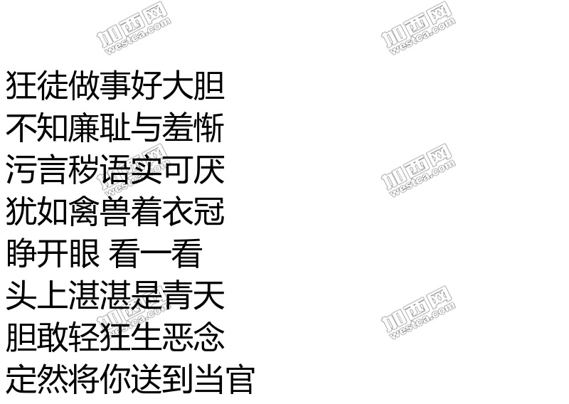 他是谁? 狂徒做事好大胆 不知廉耻与羞惭 污言秽语实可厌 犹如禽兽着衣冠 睁开眼 看一看 头上湛湛是青天