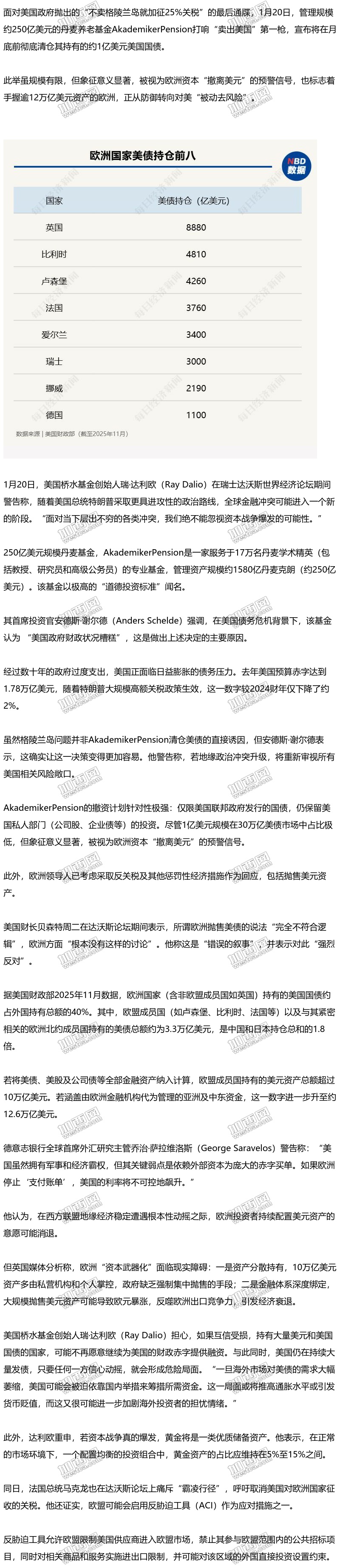 丹麦反击打响第一枪!抛250亿美元养老基金“清仓美债”