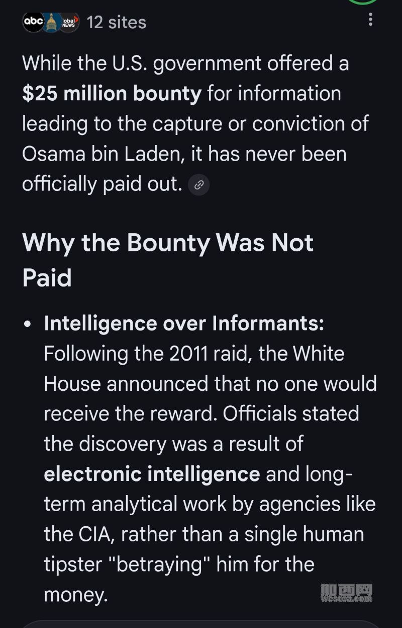 本拉登也是被悬赏通缉,被叛徒(医生?快递员?)出卖被杀後,叛徒也没拿到赏金