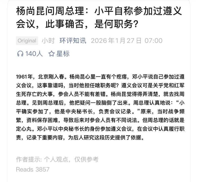 死无对证式捏造杨尚昆假周恩来之口来伪证邓小平参加过遵义会议,实乃弄巧成拙