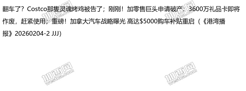 翻车了?Costco那b灵魂烤鸡被告了;刚刚!加零售巨头申请破产:3600万礼品卡即将作废,赶紧使用;重磅!加拿大汽车战