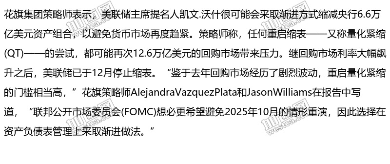 凯文.沃什很可能会采取渐进方式缩减央行6.6万亿美元资产组合