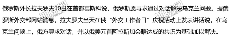 俄罗斯愿寻求通过对话解决乌克兰问题