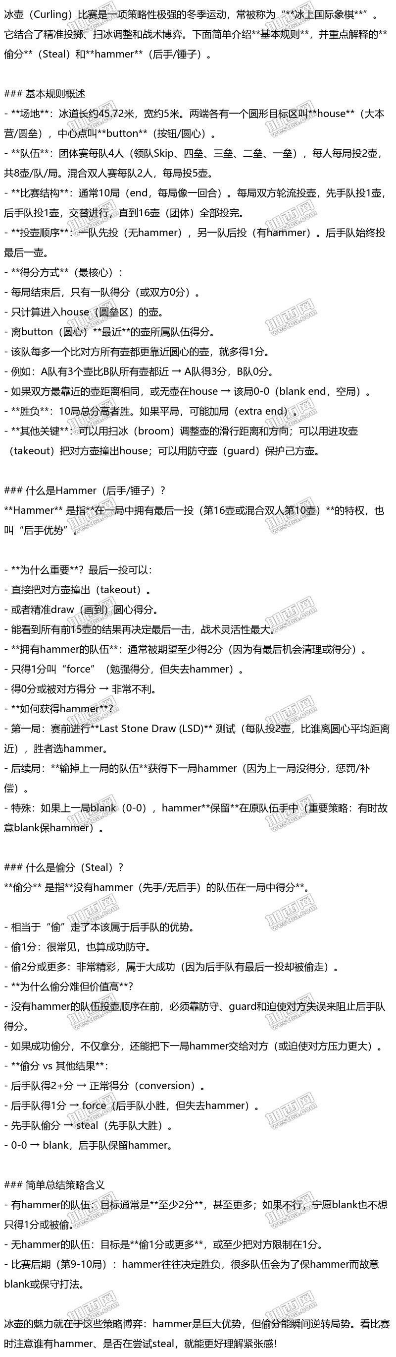 個人覺得冰壺是冰上運動中最無聊的一種。。。個人感覺而已。特別是放手之後那一連串的吼叫。。。。冰壺都出手了,行就行,不行就不行,吼來幹個毛哦,又不能改變什麼,靜靜地看結果就行了。