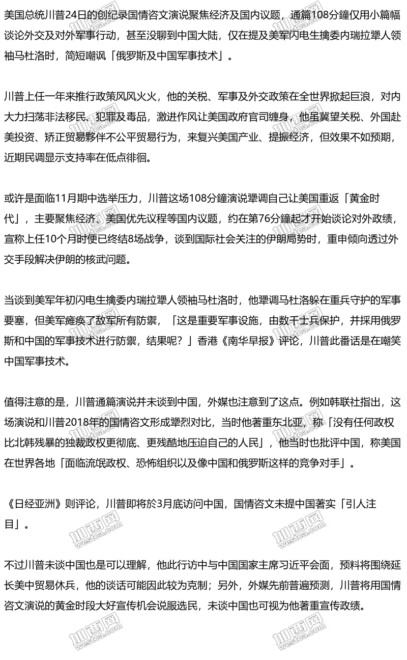 特朗普國情咨文事實查核:失業率 物價 戰爭調停…