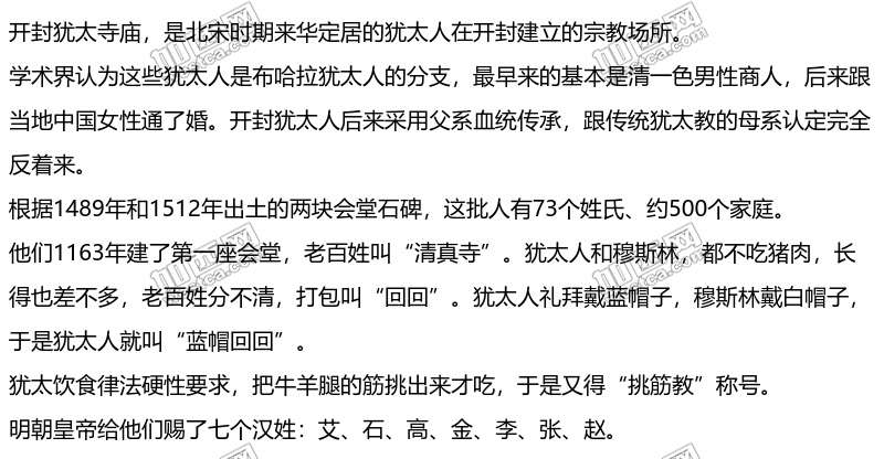 但開封猶太人千年來走的是父系傳承,猶太男性娶中國女性。爸的爸的爸可能是摩西老鄉,但媽的媽的媽是正宗河南人,按以色列標准不算猶太人。