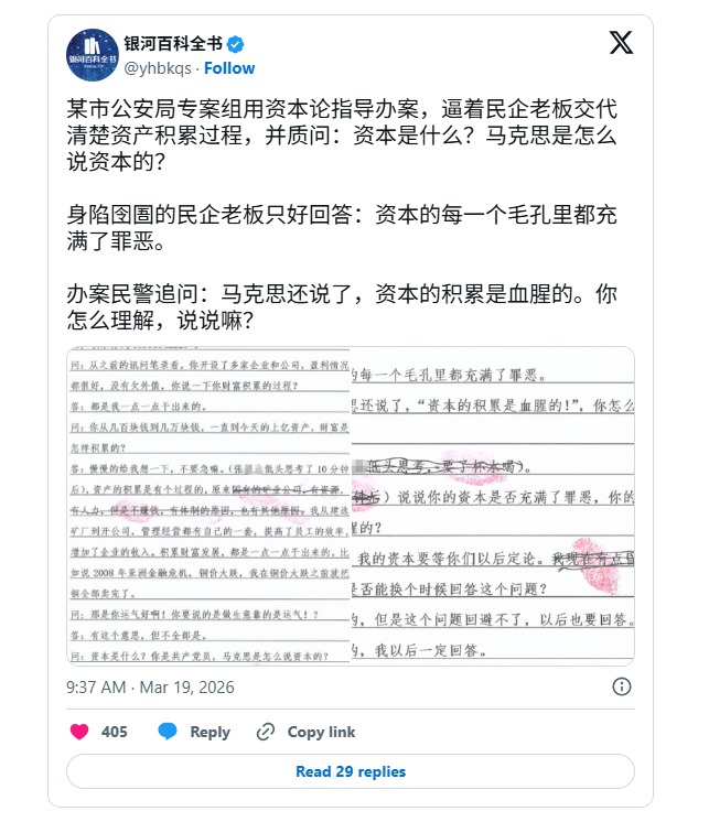 在這份筆錄裡,中共公安問了一個問題後,民企老板陷入了沉默,因為他已經清晰了感覺到了那徹骨的寒意。