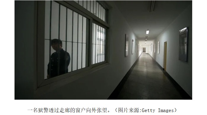 一名獄警透過走廊的窗戶向外張望。(圖片來源:Getty Images)