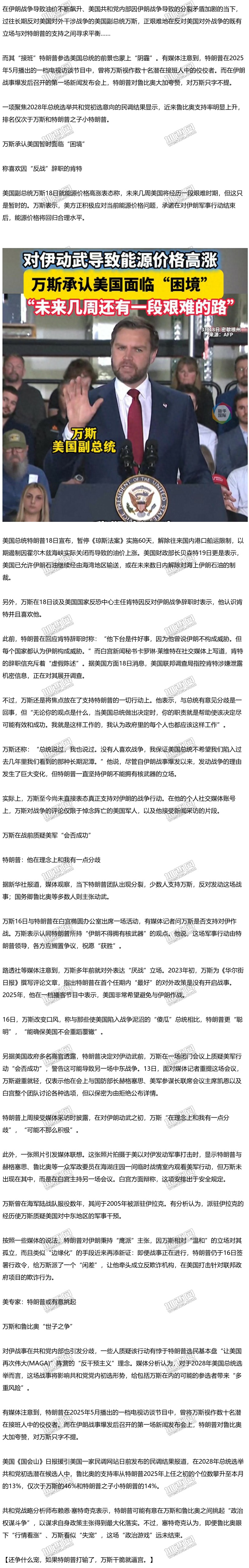 伊朗点名副总统万斯来谈判 原因曝光