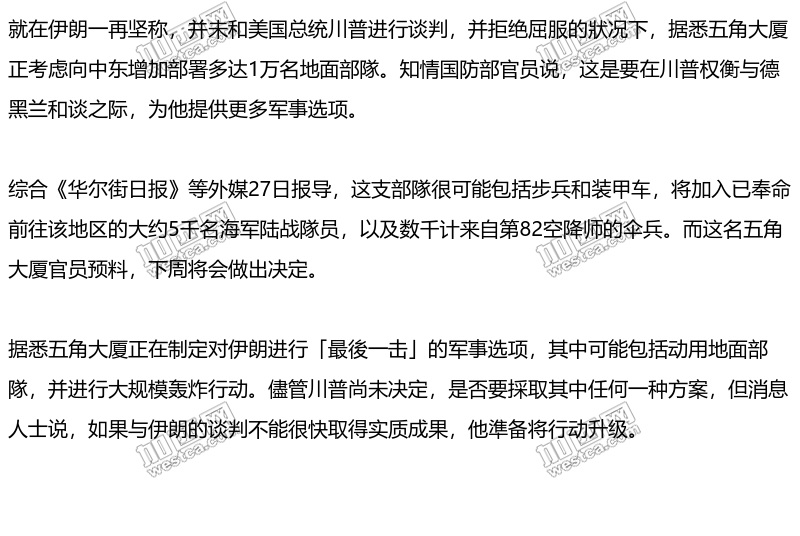 伊拒绝中国船只通过海峡 川普拟派万人地面部队 |