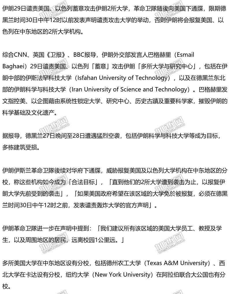 伊朗呛炸美、以大学中东分校 下通牒...