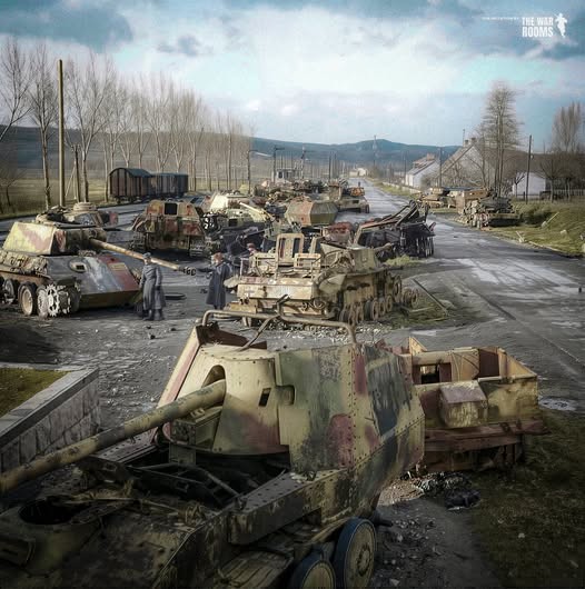 残骸中包括豹式坦克和猎豹38(t)坦克歼击车