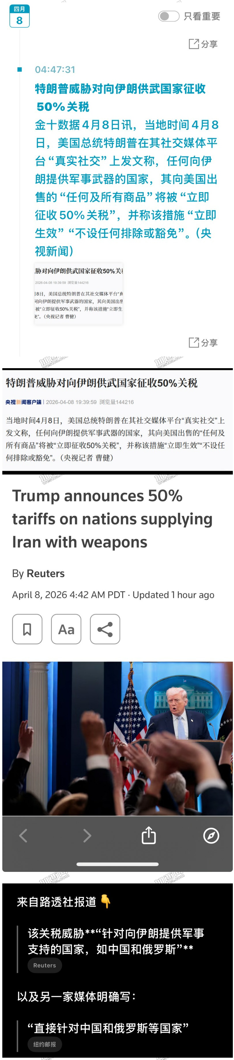 WSJ:川普对伊朗威胁"硬控"全球的一天