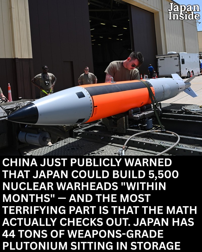 日本目前储存着44.4公吨分离钚,足以制造大约5500枚核弹头。