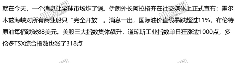 重磅! 伊朗宣布霍爾木茲海峽"完全開放" 特朗普激動喊"謝謝" 全球股市狂飆!