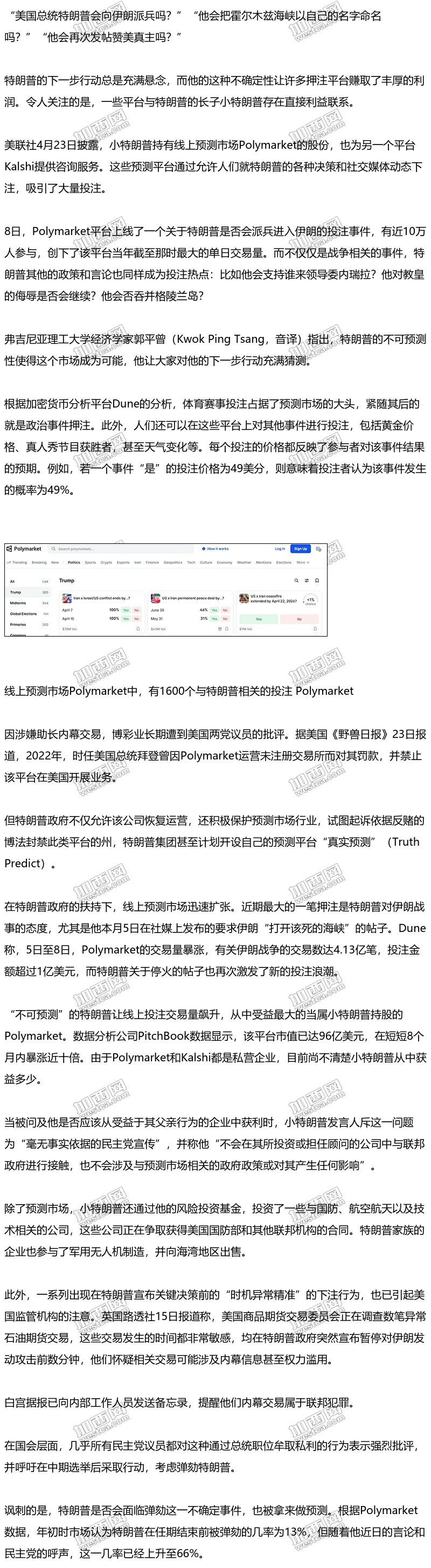 特朗普政策越反复,他儿子持股的博彩平台越赚钱
