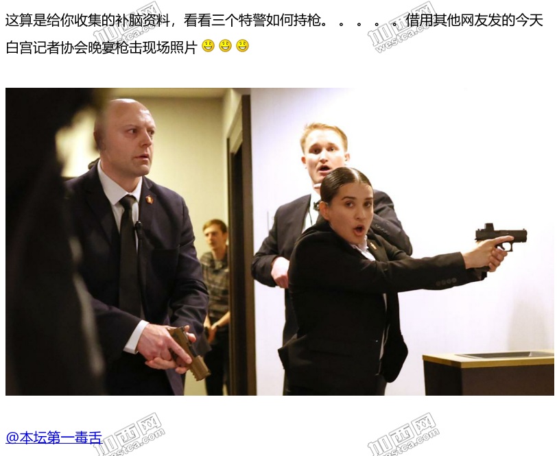 上次告诉毒舌警察应急对疑犯开枪时要双手持枪,记得毒舌认为他们川卫兵可以一手持手机录像另一手开枪。 。 。 。 。常跟毒舌的帖子会影响脑细胞的活跃度 icon_lol.gif icon_lol.gif icon_lol.gif