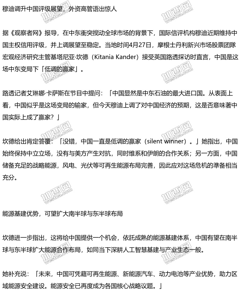 此前已有多家國際媒體聚焦中國應對能源市場衝擊的強大韌性。《紐約時報》指出,中國幾十年來投入數千億美元發展電動汽車和可再生能源,這一長期戰略如今正在開花結果,「中國手裡有唡張王牌:電動汽車和可再生能源」。