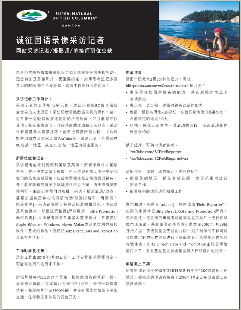 發電郵時,在題目(subject)一欄內請填“Field Reporter” 。收到的申請將歸 Blitz Direct, Data and Promotion所有,恕不退還。被挑選的申請者可能需再呈交短片,進行