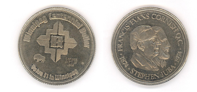 如果哪位同學也收集trade dollar, 我有多余的一枚1974 Winnipeg Centennial Trade Dollar (大小和加幣老1元一樣), 想換其他省的Trade Dollar.