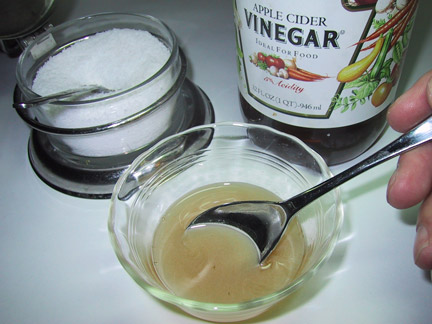 其實很多方法清洗的,如 tabasco sauce,還有醋和鹽(下圖)。