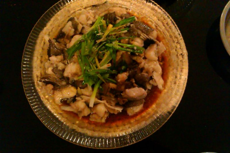 鱼下巴洗净蒸好,放上葱段,浇上热油和酱油。ok!