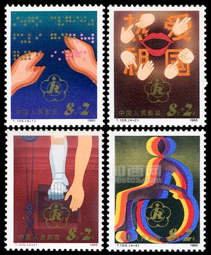 1985年3月15日,原邮电部又发行T105《中国残疾人》特种附捐邮票一套4枚。