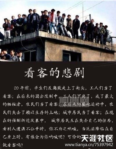 看着柴玲那个精神娼妓,吾尔开希那个流氓投机者,看着他们的表演,其实我没有任何情绪,包括厌恶、怜悯、气愤、或者悲哀,其实什么都没有。为什么呢?因为这样才正常。几百万人的行为,都怀着同一个动机,都有着高度的觉悟和纪律,都有着高尚的人格,可能吗?可是,就是有人在挑里面的污点,把它放大、放大、再放大。